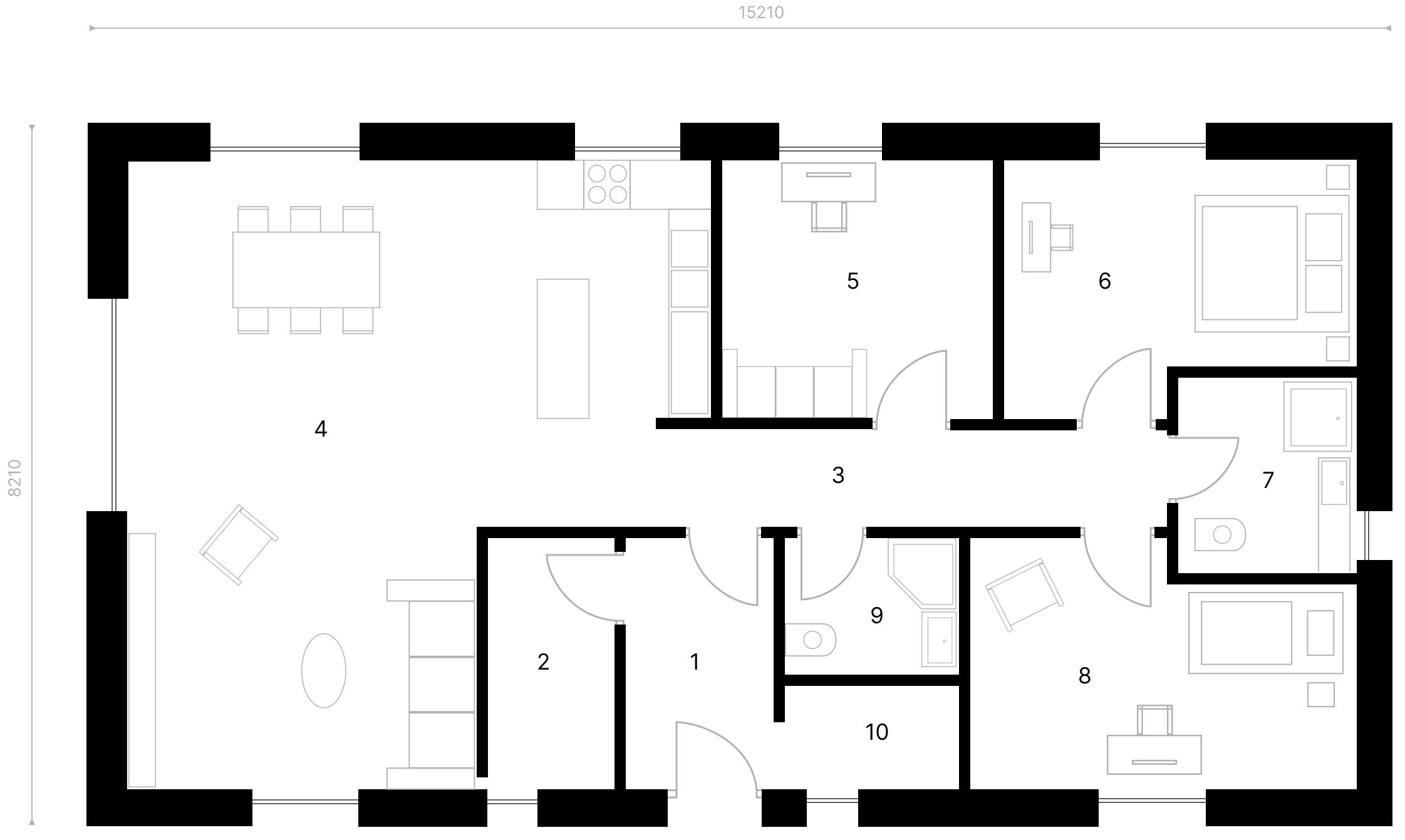 • Možnost posouvání vnitřních příček a změny dispozice.