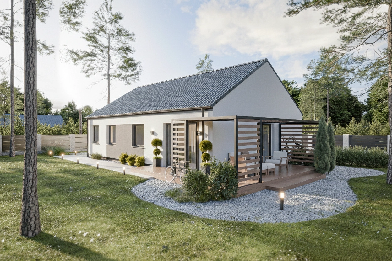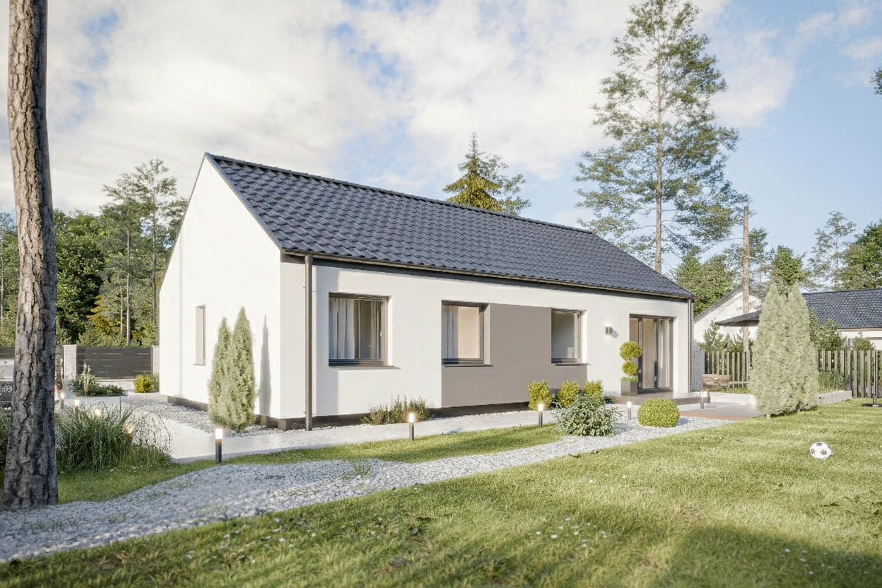 Dům 100 představuje ideální rodinné bydlení, které na užitné ploše 100 m² efektivně propojuje prosvětlený společenský prostor s klidovou zónou. Dominantou domu je velkorysý obývací pokoj s přímým vstupem na zahradu, zatímco soukromá část nabízí tři ložnice, přičemž ty dětské jsou navrženy se shodnou výměrou pro maximální spravedlnost. Praktičnost každodenního provozu zajišťují dvě koupelny (případně koupelna a samostatné WC) a dostatek úložných prostor v podobě zádveří s místem pro vestavnou skříň. Jedná se o promyšlené a komfortní řešení, které bez kompromisů splní nároky moderní čtyřčlenné rodiny.