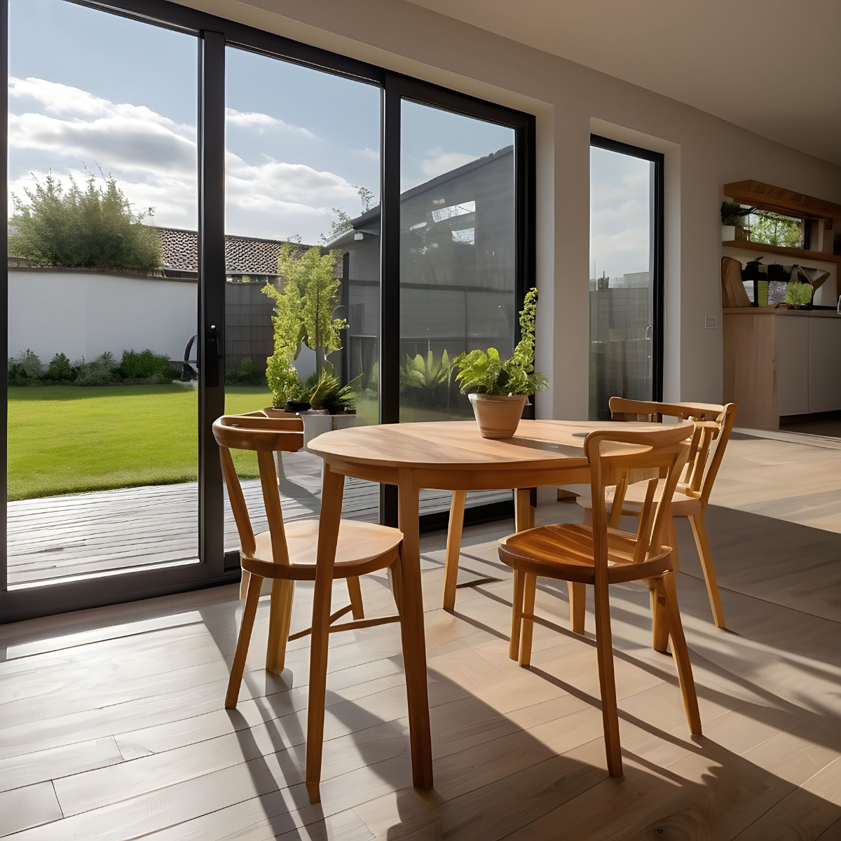 Okna bílé, trojsklo, portál - terasa, vchodové dveře