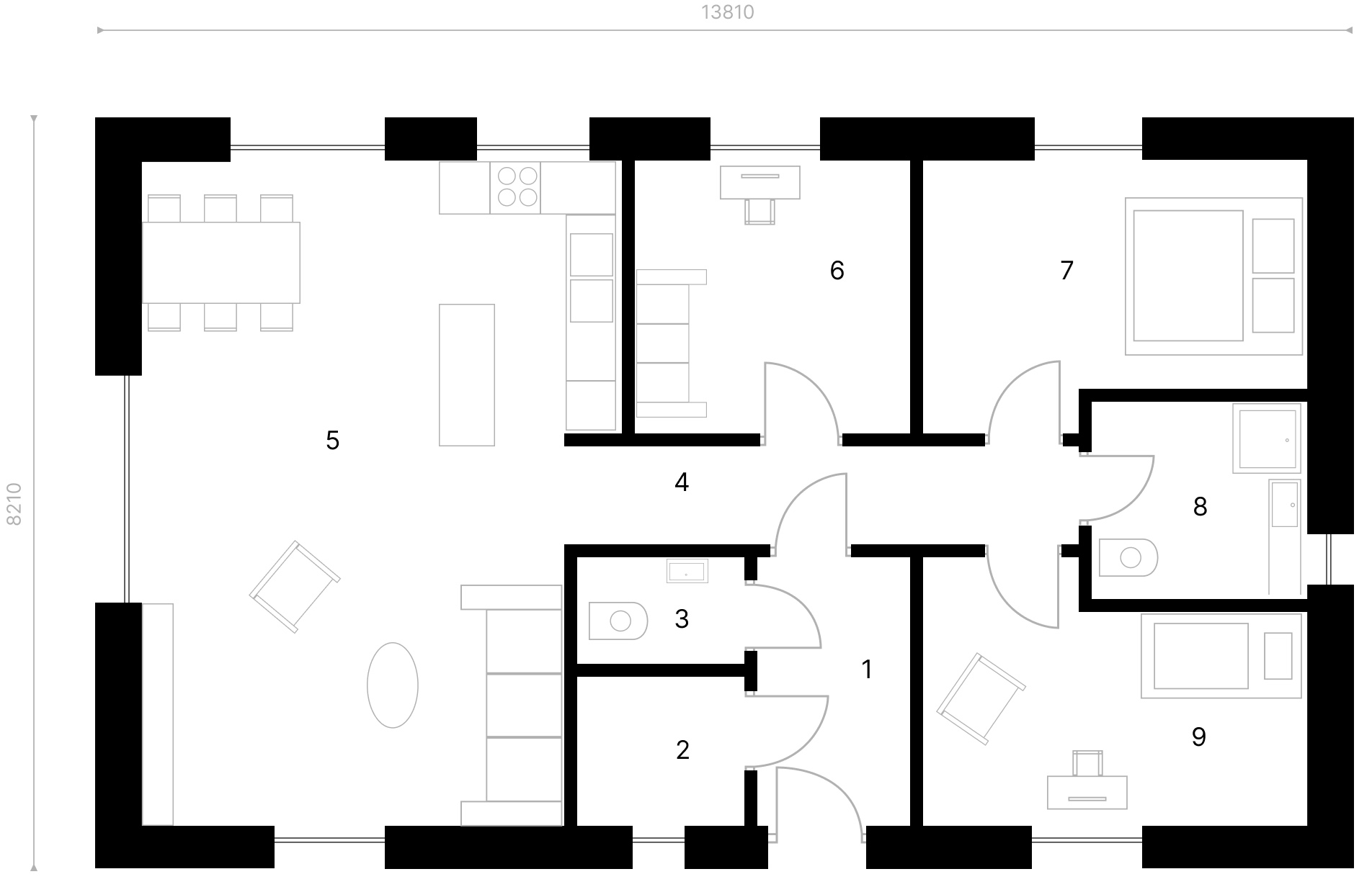• Možnost posouvání vnitřních příček a změny dispozice.